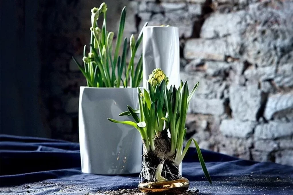 Wazony wykonane z białej i barwionej na czarno porcelany, można aranżować